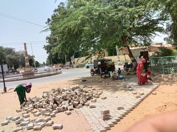 विजय स्तम्भ के पास तपती दोपहरी में मजदूरी करने को विवश कामगार।