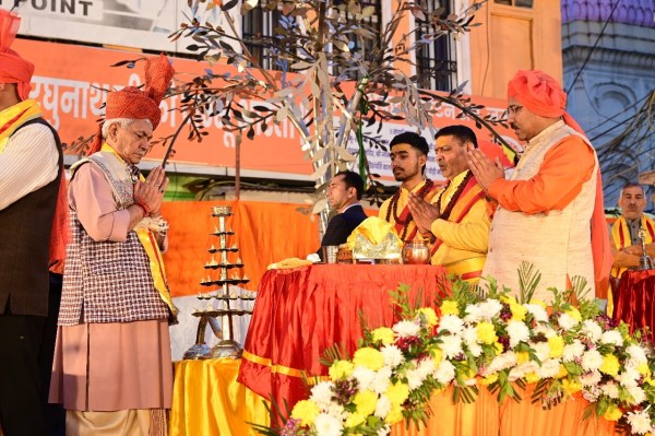 जम्मू आरती में जम्मू-कश्मीर के उपराज्यपाल मनोज सिन्हा ने भाग लिया।