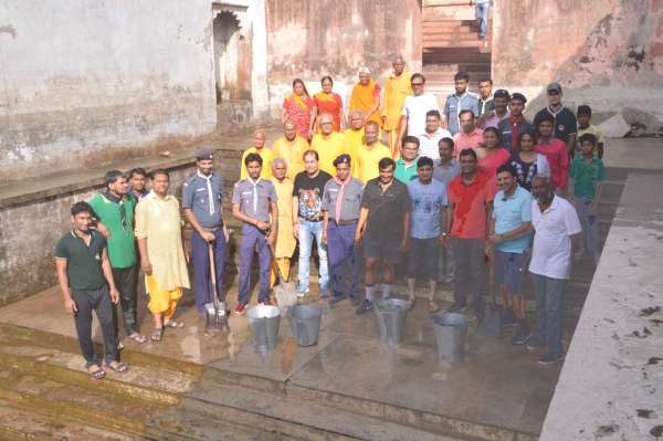 झालावाड़ में राजस्थान पत्रिका के अमृतं जलम् अभियान के तहत चंद्रावती बावड़ी के झरोखें पर श्रमदान कर सफाई करते शहरवासी। फोटो-जितेंद्र जैकी