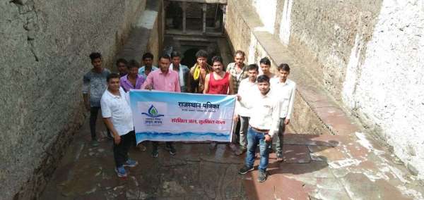 भीमसागर . बाघेर बावड़ी में मानव श्रखला बना कर श्रमदान करते हुए