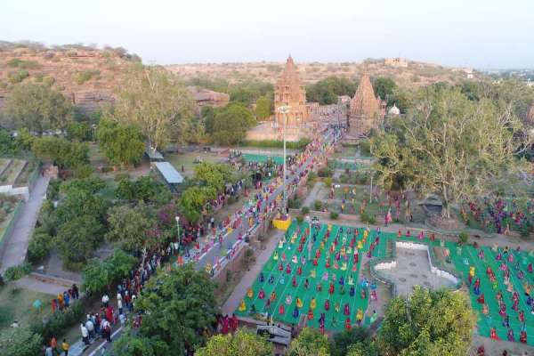 जोधपुर के मंडोर उद्यान की स्थापत्य कला एवं एेतिहासिक देवलों के बीच मंगलवार शाम 1500 महिलाओं, बालिकाओं व युवतियों की ओर से प्रस्तुत सामूहिक घूमर नृत्य दर्शकों के मन की डोर बांधने में सफल रहा। फोटो : एसके मुन्ना