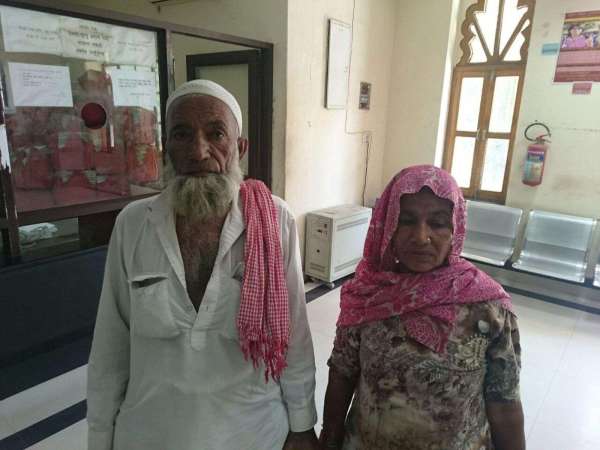 पेंशन के लिए पत्नी के साथ चक्कर काट रहा भांडू गांव का बुजुर्ग शफीक खां और उसकी पत्नी