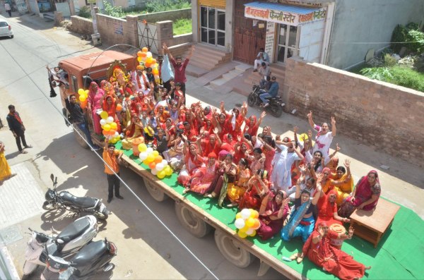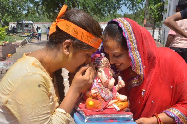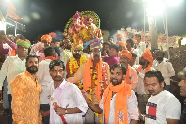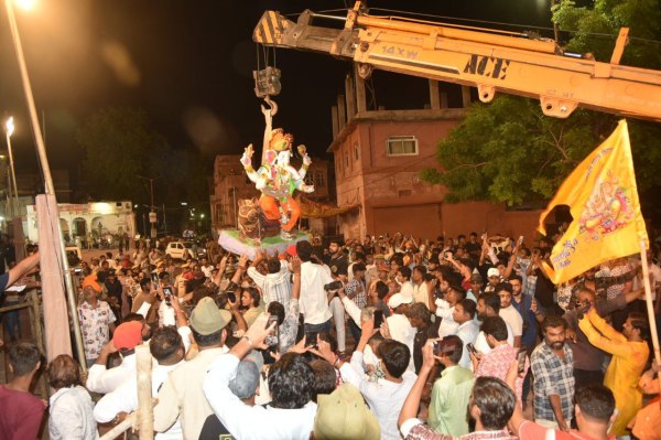 मंडोर क्षेत्र के गोकुलजी की प्याऊ के पास ट्रेलर में भगवान गणेश की प्रतिमा विसर्जन के लिए जाते लोग।