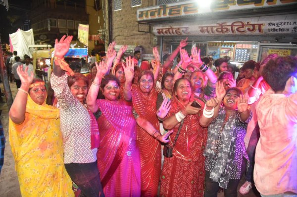 विसर्जन के दौरान भक्ति के उल्लास में झूमती महिलाएं।