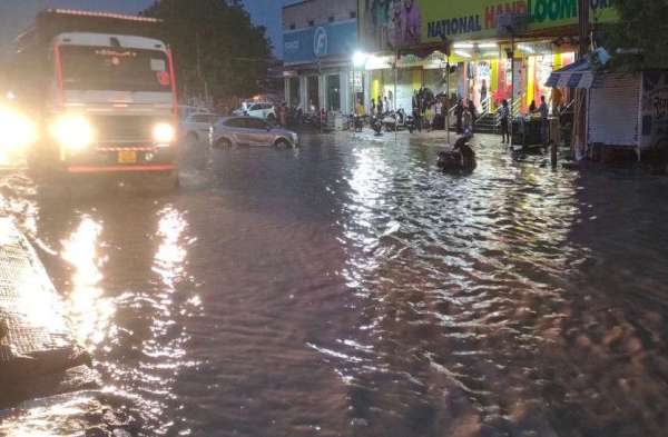 जोधपुर: 12वी रोड पर लिया गया मूसलाधार बारिश का दृश्य।