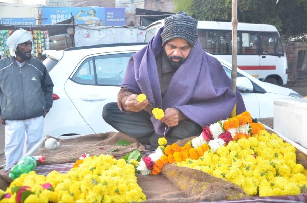 सुबह सर्द हवा से बचने के लिए गर्म कपड़ों का सहारा।
