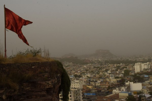 मेहरानगढ़ किले के आसपास छाया मिट्टी का गुबार।