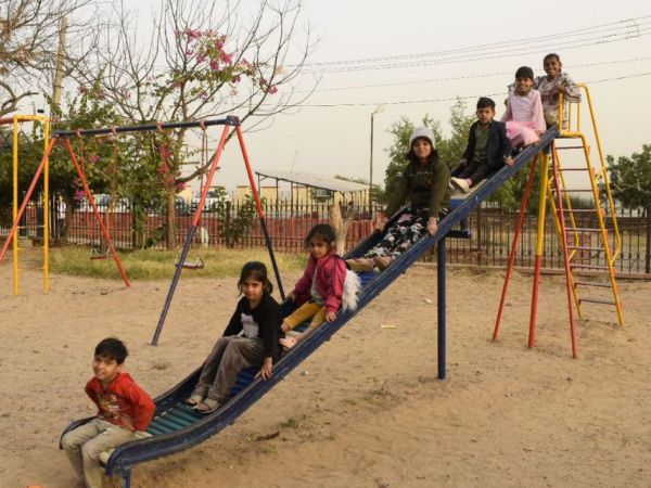 मसूरिया पहाड़ी पर स्थित वीर दुर्गादास पार्क में मस्ती करते व झूला झूलते छोटे बच्चे।