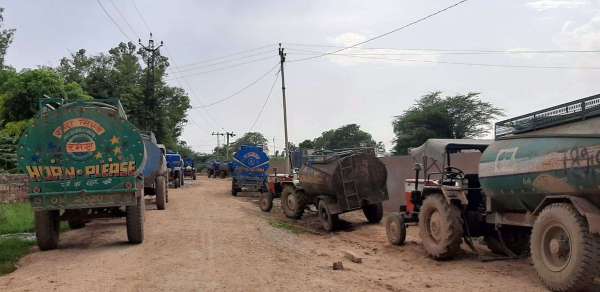 हिण्डौनसिटी. मुकंदपुरा रोड स्थित एक कुए से पानी भरवाने के लिए खड़े टेंकर।