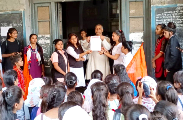 महाविद्यालय में फैली अनियमितताओं पर छात्राएं नाराज
