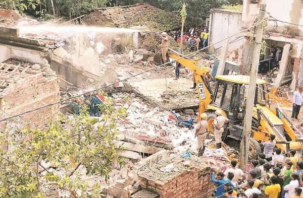 बुलडोजर की मदद से ढहे हुए मकानों का मलबा हटाया गया। तीन महीने पहले भी पूर्वी मेदिनीपुर जिले के इगरा में खादीकुल गांव में एक अवैध पटाखा फैक्ट्री में हुए विस्फोट में फैक्ट्री के मालिक भानु बाग सहित 12 लोग मारे गए थे।