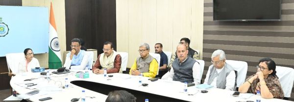 राज्य सचिवालय नवान्न में वरिष्ठ अधिकारियों के साथ बैठक करतीं सीएम ममता बनर्जी।