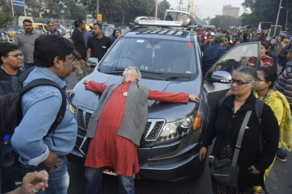 अभया मंच की ओर से कोलकाता में आयोजित विरोध प्रदर्शन में हिस्सा लेते लोग।