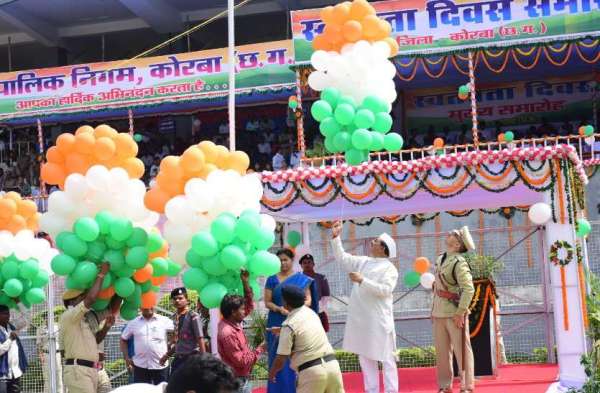 आकाश में गुब्बारे छोड़ते जिले के प्रभारी मंत्री डॉ. प्रेमसाय सिंह।