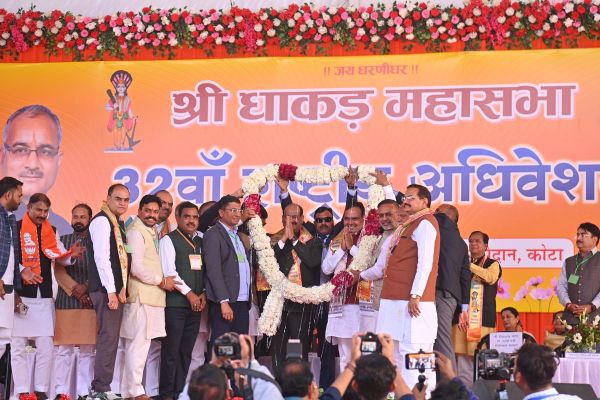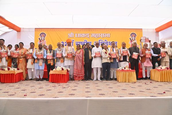 दशहरा मैदान में रविवार को आयोजित धाकड़ महासभा के 32वें राष्ट्रीय अधिवेशन में उपस्थित समाजबन्धु