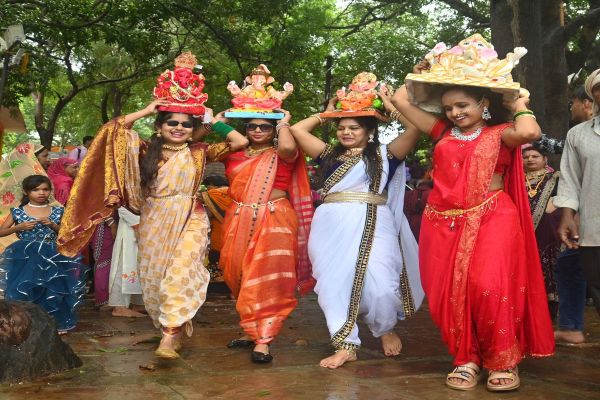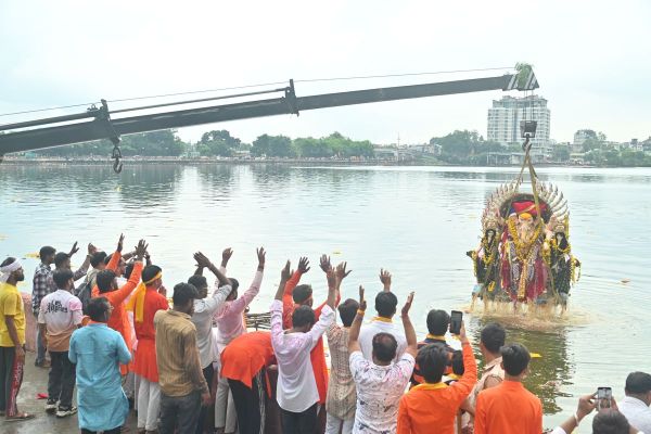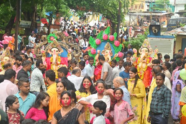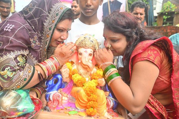 पारम्परिक वेशभूषा में गणेश जी को विदा करने पहुचे श्रध्दालु।