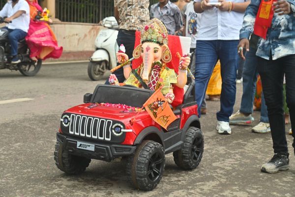 टॉय कार में बैठ भ्रमण को निकले बप्पा