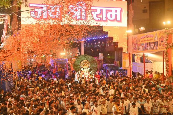 कोटा में अनन्त चतुर्दशी पर नए कोटा के भीतरिया कुंड में विसर्जन के लिए गणपति को लेकर आते श्रद्धालु।