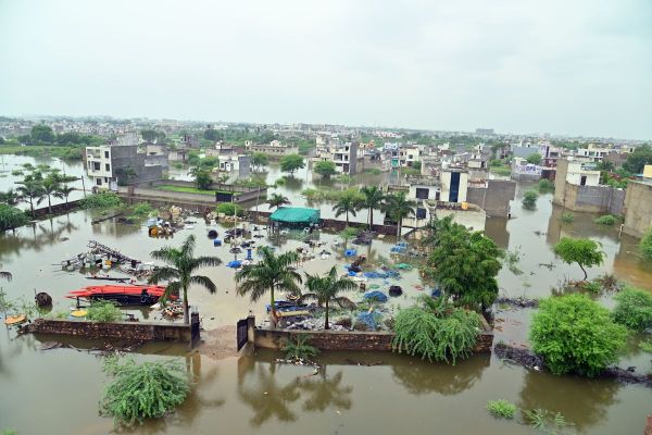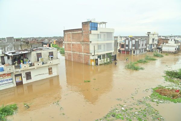 Heavy rain:जलमग्न कॉलोनियां, छतों पर शरण लेते दिखे लोग
