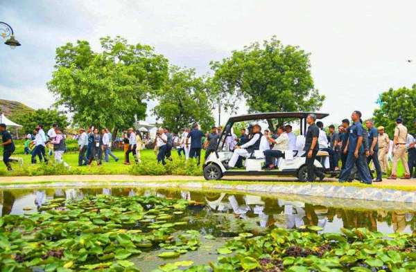 सीएम ने मंत्रियों के साथ करीब डेढ घण्टे तक भ्रमण कर ऑक्सीजोन का अवलोकन किया। पार्क में गहलोत और धारीवाल ने पौधारोपण भी किया और गन मेटल से बनी ट्री मैन प्रतिमा के सामने सामूहिक फोटोशूट कराया। चिल्ड्रन पार्क में बच्चों ने फूल देकर मुख्यमंत्री का स्वागत किया। बोट में बैठकर पार्क का निरीक्षण किया।