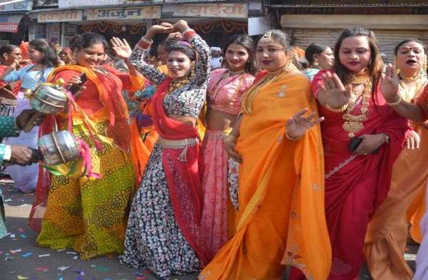 शोभायात्रा मेें शामिल देशभर से आए किन्नर।