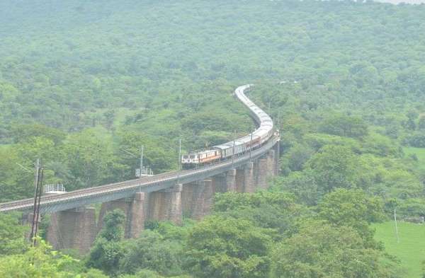 मुकुन्दरा हिल्स टाइगर रिजर्व की पहाडि़यों को चीरकर निकली ट्रेन का लिया मोहक नजारा।