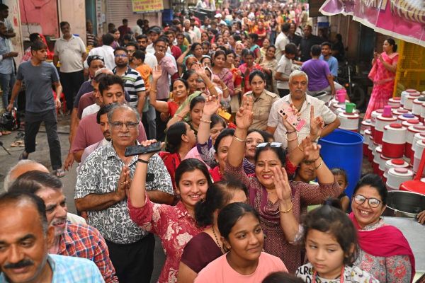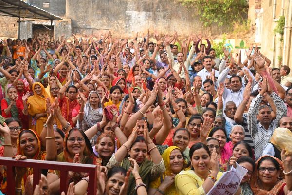 रामधाम आश्रम में दर्शनों को लगी कतारें।