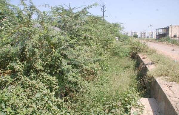 झाड झंकार व अतिक्रमण से अटी दायीं मुख्य नहर की किशनपुरा डिस्ट्रीब्यूट्री।