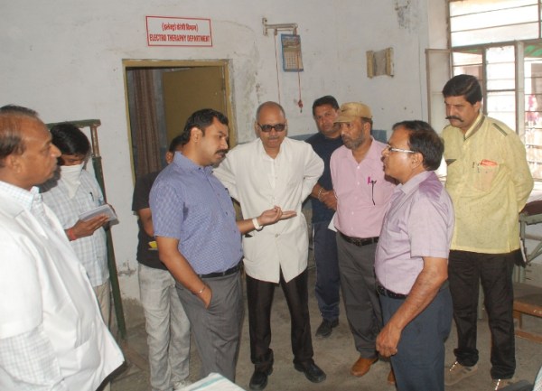 एमबीएस अस्पताल में संचालित जिला पुर्नवास केन्द्र के स्टोर रूम में कबाड़ भरा होने पर चिकित्सक से नाराजगी जाहिर करते जिला कलक्टर।