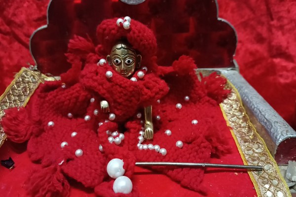 कोटा में कड़ाके की सर्दी में ठाकुरजी को धारण करवाई ऊनी पोशाक।