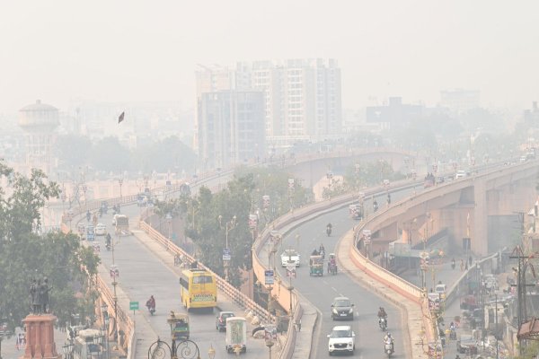 कोटा में कड़ाके की सर्दी में सुबह कोहरे से ढकी नयापुरा पुलिया।