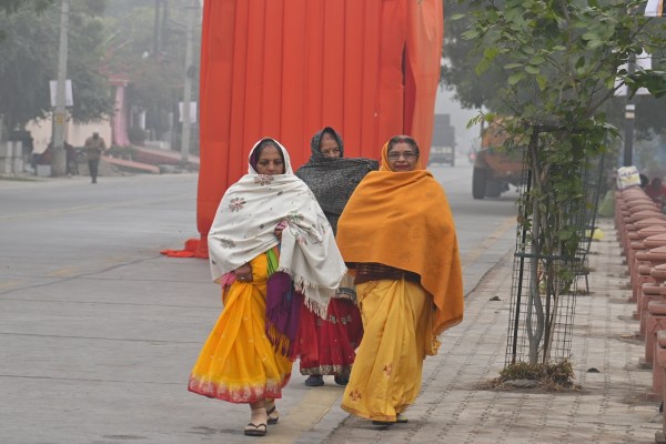 कोटा में कड़ाके की सर्दी में स्वेटर व शॉल ओढ़कर गुजरती महिलाएं।