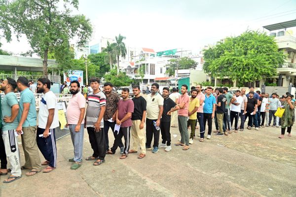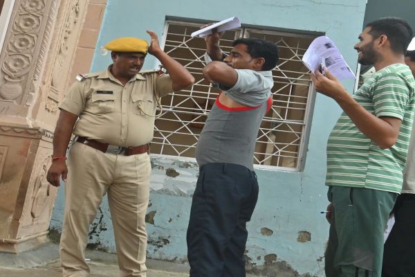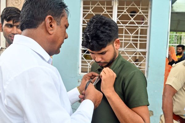 कोटा. आरपीएससी की ओर से वरिष्ठ अध्यापक प्रतियोगी परीक्षा-2024 का आयोजन रविवार से शुरू हुआ। यह परीक्षा 12 सितंबर तक चलेगी। जिसमें 1 लाख 48 हजार से अधिक अभ्यर्थी नामांकित है। 8 विषयों के 2129 पदों के लिए यह परीक्षा आयोजित कीपरीक्षा केंद्र में अभ्यर्थियों को पूरी तरह से चेक कर परीक्षा केंद्र में भेजा गया। पुरुष अभ्यर्थियों को फुल आस्तीन की शर्ट बदलाई। वहीं महिला अभ्यर्थियों के हाथों से चूड़े और पैरों से बिछिया खुलवाई गई। कई अभ्यर्थियों से हाथों में बंधे हुए धार्मिक डोरे भी खुलवाएं। करौली से पेपर देने आई महिला अभ्यर्थी अपने छोटे बच्चों को पति के पास छोड़कर परीक्षा देने गई। जबकि बसंत विहार स्थित एक निजी कॉलेज में बनाए गए सेंटर पर पुरुषों की पेंट पर लगे मेटलिक बटन तोड़े गए। कई अभ्यर्थियों के शर्ट की कैंची से आस्तीन काटी गई। कई अभ्यर्थी बनियान में पेपर देने अंदर पहुंचे।