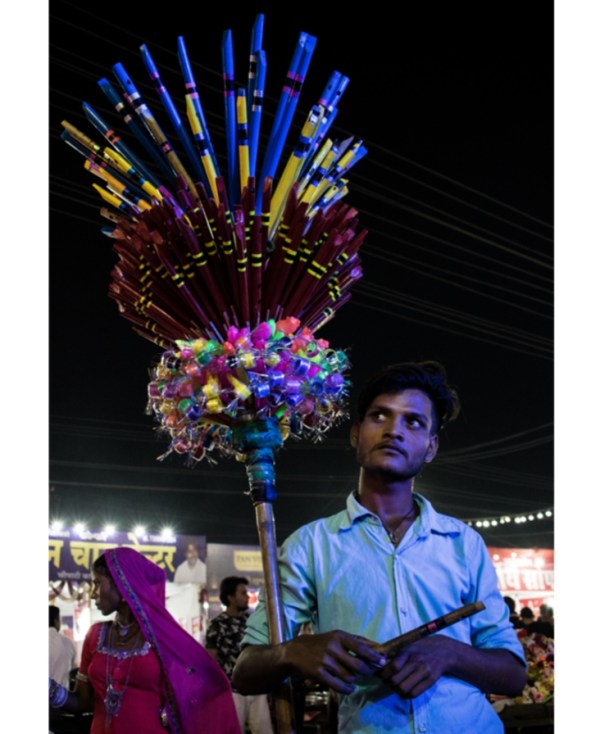 ग्रैण्ड कोटा दशहरा में बांसुरी लेकर खड़ा युवक।