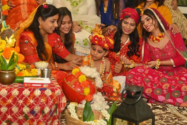टिपटा िस्थत गोविन्ददेव मंदिर में श्रृंगारित प्रतिमा।