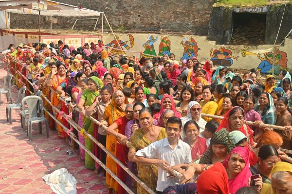 पाटनपोल िस्थत बडे मथुराधीश मंदिर में दर्शनों को लगी श्रघ्दालुओं की कतारें।