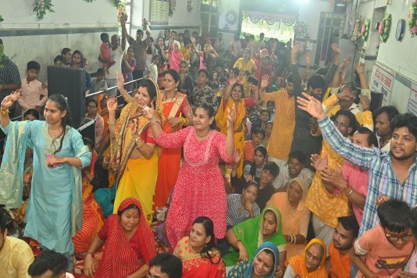 रंगबाडी िस्थत बांके बिहारी मंदिर में आयोजित नंदोत्सव के दौरान भक्तिभाव में सराबोर श्रध्दालु