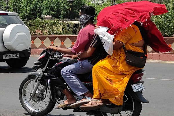 धूप व गर्म से हवा से बचने के लिए स्कार्फ का सहारा लिया।