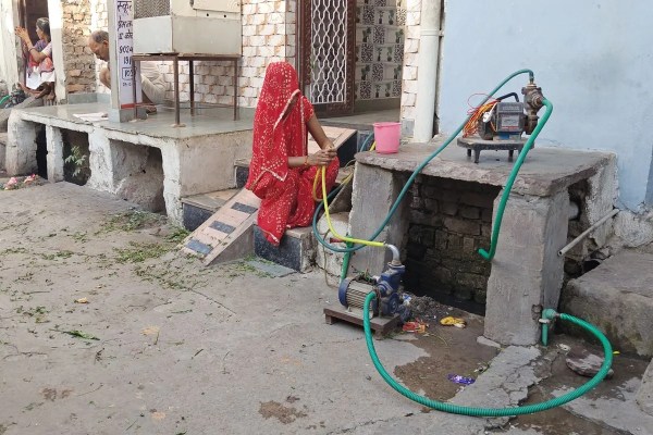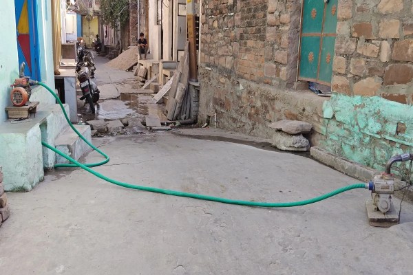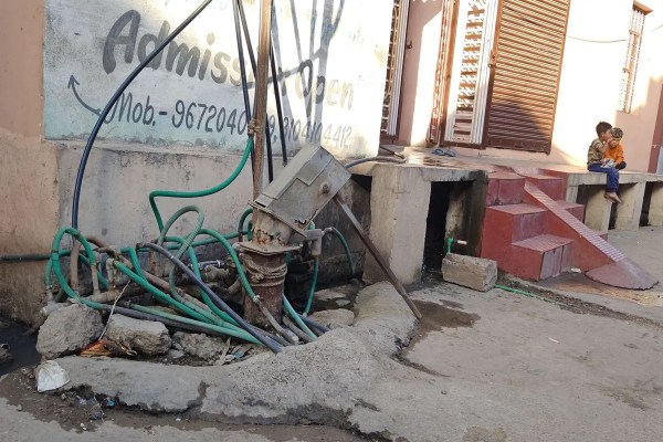 कम दबाव से पानी की समस्या के चलते पंप लगाकर हो रही जलापूर्ति