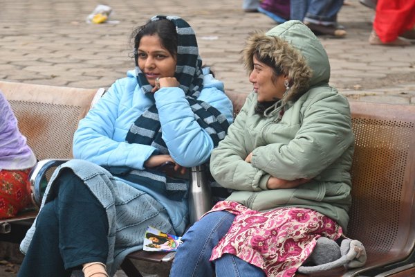 कोटा में तेज सर्दी के दौरान पार्क में बैठकर बातें करती महिलाएं।