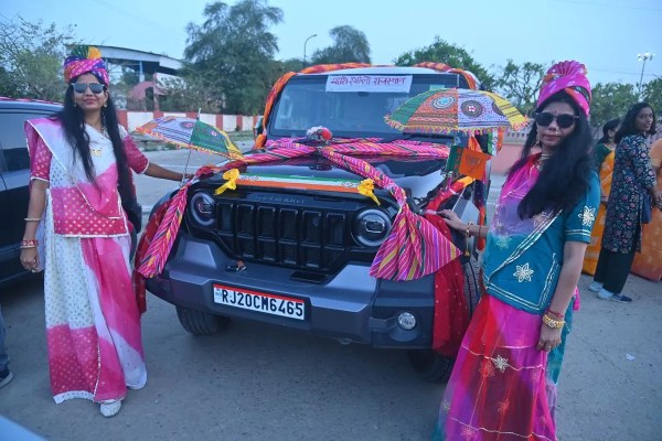 वुमन कार रैली में ​राजस्थानी थीम पर सजी कार।