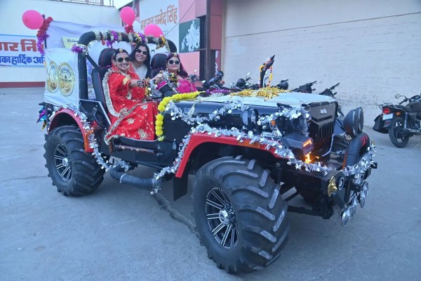 वुमन कार रैली में बणी-ठणी थीम पर सजी जीप व जीप सवार महिला।