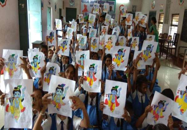 कृष्ण जन्माष्टमी के उपलक्ष्य पर आयोजित नटखट कान्हा चित्र कला प्रतियोगिता में भाग लेने का बच्चों की आखो में उत्साह देखते ही बन रहा था। नन्हे नन्हे हाथो से श्रीकृष्ण के चित्रो को रंग बिरंगे कलरों से रंग भरना तथा सर्वश्रेष्ट आने की लल्क उनके आखो पर साफ दिखाई पर रही थी सभी बच्चो ने बडे उत्साह के साथ इस प्रतियोगिता में भाग लिया बच्चो को कृष्ण के चित्रो का आर्ट पेपर सभी बच्चो को बाटे गये तथा साथ ही सभी को बच्चों चाकलेट, केक, बिस्कूट, वितरित की। इस प्रतियोगिता में कक्षा एक से आठ तक चार सौ बच्चो ने भाग लिया