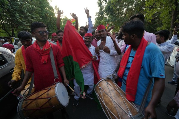 पार्टी और इंडिया गठबंधन की जीत की खुशी से लबरेज कार्यकर्ता ढोल-नगाड़ों की गूंज पर देर रात तक थिरकते रहे।