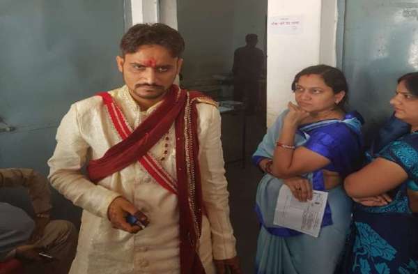 शादी की रस्मों के बीच दूल्हा-दुल्हन पहुंचे मतदान करने