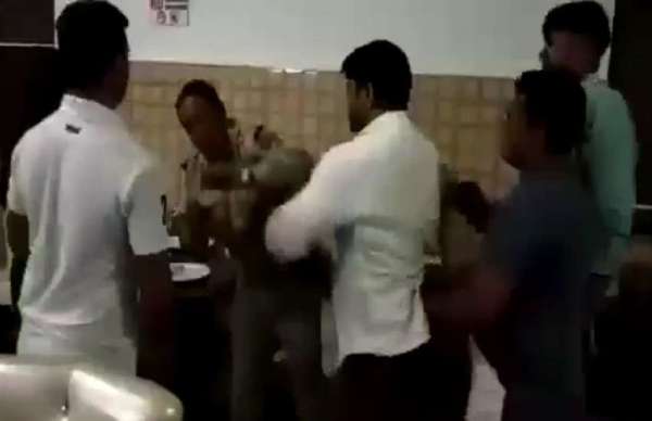 होटल में दरोगा को पीटता भाजपा पार्षद।