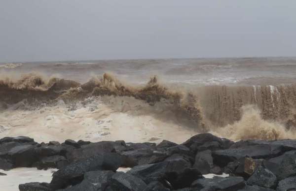 गुजरातः किनारे पर चट्टान से टकाराने के लिए तेजी से उठती समुद्र की ऊंची लहरें