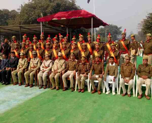 पासिंग आउट परेड के बाद फोटो सेशन करवाते पुलिसकर्मी।