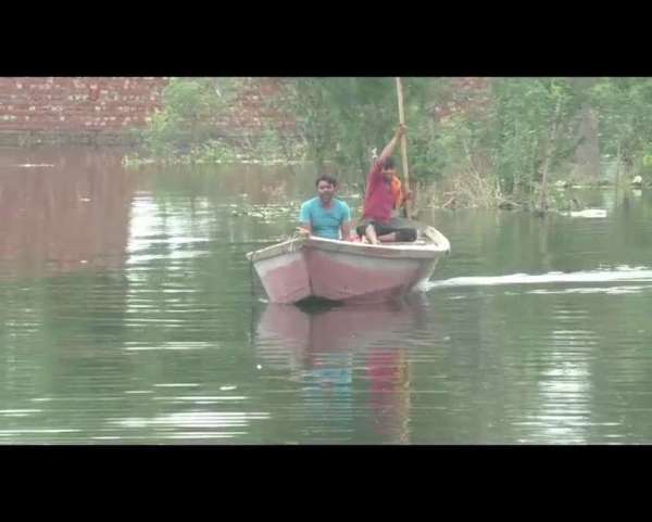 इस मोहल्ले की गलियों और सड़कों में चार फुट से अधिक पानी भर गया है। प्रशासन को लोगों के लिए नाव की व्यवस्था की है।