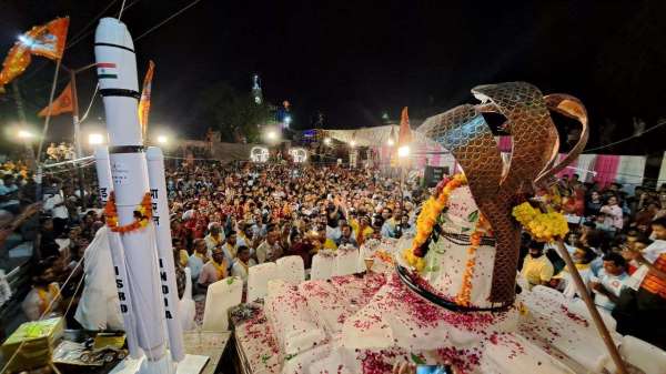 चंद्रयान-3 की झांकी में आठ फीट लंबा राकेट, लेंडर विक्रम के साथ ही विक्रम रोवर भी तैयार किया गया। बाबा बर्फानी के दर्शनों के लिए शाम छह बजे से ही भीड़ उमड़नी शुरू हो गई।